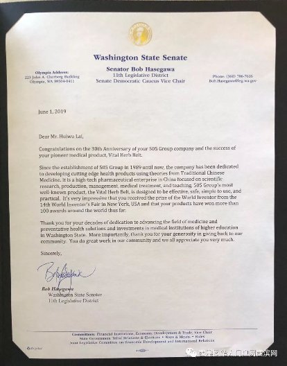 兹鉴于成立于1989年6月1日的505集团,30年来一直致力于为改善人类健康而创造生产保健品,其中贵公司的尖端产品“505神功元气袋”,运用中医原理,通过内病外治,平衡阴阳,调理气血,疏通经络,经研究表明,使用元气袋可以改善血液循环,提高免疫力,解决食欲不振等其它功效。