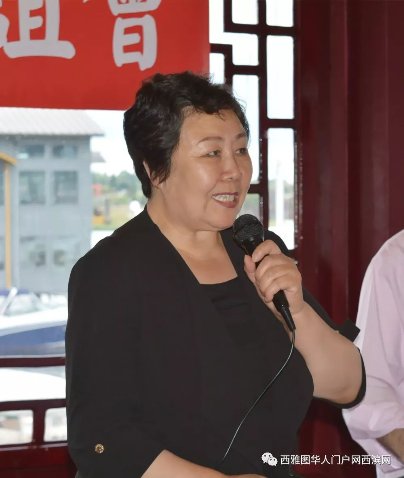 华州新侨联合总会、华州妇女联合总会会长吴小明发表感言,赞扬来辉武教授无私捐助和慷慨支持侨团演出活动。