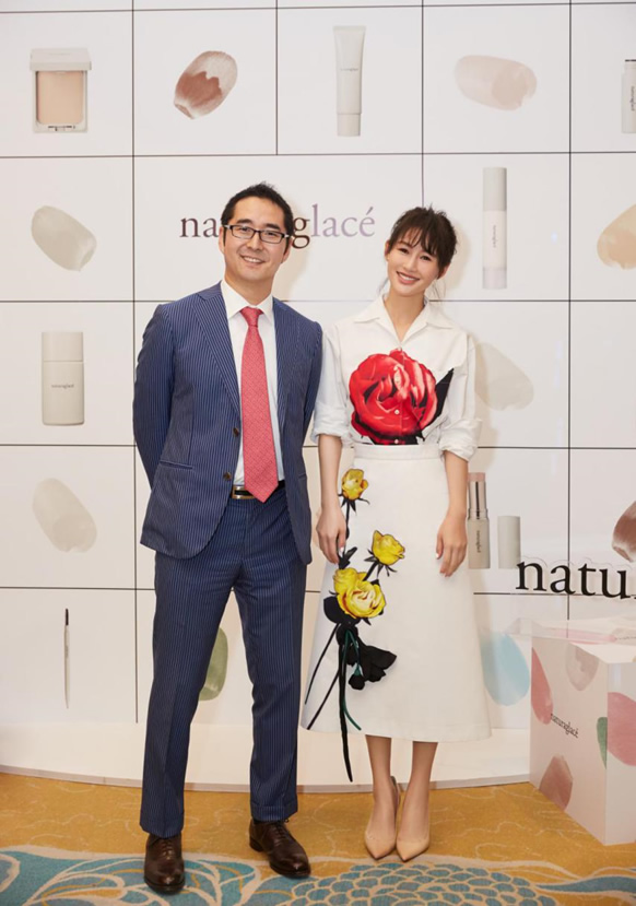 活动伊始,Naturaglacé花姿菓色的社长萩原吉晃先生上台致辞,曾有两年多中国留学经历的萩原吉晃先生,现场分享自己的留学趣事,并表达了对中国文化的热爱。说到Naturaglacé的品牌历史和特色,萩原社长总结为:在护肤品里加上了颜色,使它变成彩妆。Naturaglacé花姿菓色品牌自诞生以来,原材料均采用100%天然有机成分,同时保持产品的研究能力,最大限度地追求产品的上妆效果,做符合亚洲人需求的天然彩妆品。