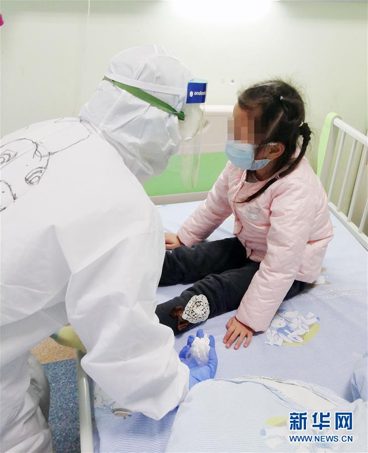 在武汉儿童医院内科楼18楼病区,护士周雪在安抚一名不爱吃药的小姑娘(2月26日摄,手机拍摄)。 新华社发