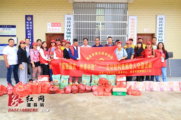 红网时刻永州9月23日讯(通讯员 蒋晓国 何发芽)9月20日,道县一米阳光社工服务中心、道县祥霖铺镇社工站联合一些爱心人士组织10多名志愿者深入祥霖铺镇红园村和赤坝塘村开展爱心活动,为贫困和孤寡老人送去了食用油、面、牛奶、大米、月饼、新衣服等生活用品,并详细地了解了他们的生活状况,以及他们家庭情况,让贫困老人真切地感受到来自社会的温暖。