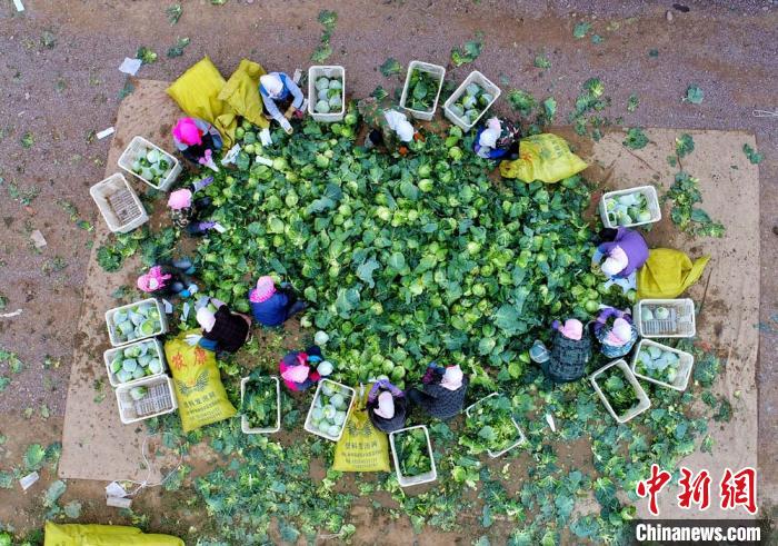 图为2020年2月,在位于兰州高新区的兰州国际高原夏菜副食品采购中心,工人正在分装蔬菜。(资料图) 刘薛梅 摄