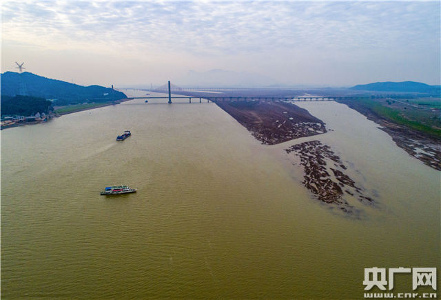 12月16日,江西省湖口县,长江与鄱阳湖交汇处,往日被湖水淹没的滩涂大面积显露出来。(央广网发 通讯员李学华 摄)