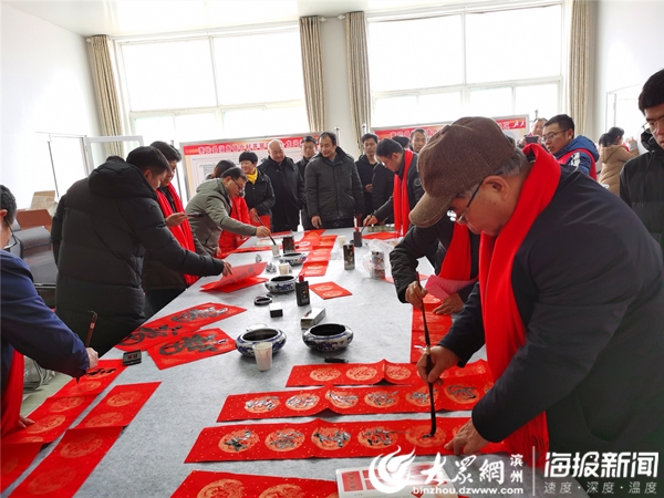 大众网·海报新闻惠民1月20日讯(记者 王君彩 孙凯 通讯员 李翠霞 袁淑琦 陶瑞雪)1月19日,省派惠民县乡村振兴服务队、滨州市总工会联合举办?“送万福进万家”书法公益活动。省派乡村振兴服务队队长、省土地综合整治服务中心主任李峰等省派乡村振兴服务队成员,滨州市总工会党组成员、副主席戴新生,中国作家协会会员、滨州市作协主席李登建,滨州市书法协会副主席徐延波等各级书法家及镇、社区干部职工、当地群众200余人参加活动。