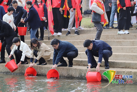 活动现场,陈怡副市长宣布保护霍童溪系列活动启动,李腾副书记等领导嘉宾向省市青联委员生态志愿服务团、宁德师范学院绿点环保志愿服务队等志愿服务队授旗,志愿者代表宣读《青春同心·守护碧水蓝天》倡议书,省青联生态服务团团长方垂弘进行生态环保知识宣讲。随后,出席活动的领导嘉宾实地开展霍童溪溪池村河段巡河工作并参与增殖放流活动,志愿者们科学放生了由北京市企业家环保基金会科学放生专项基金爱心支持的10万尾鳙鱼苗和土鲮鱼苗。