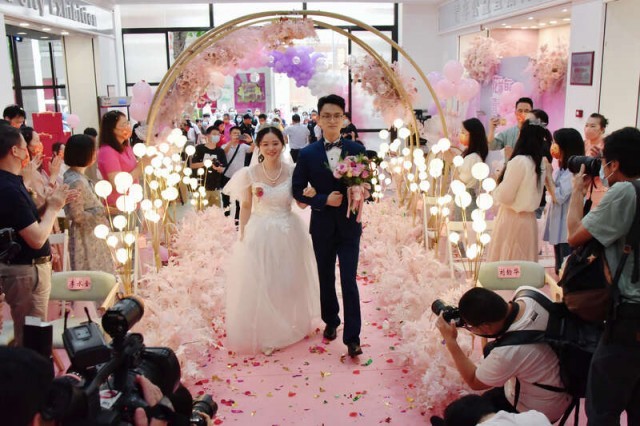 中国青年报客户端讯(朱圳玥 中青报·中青网记者 林洁)近日,2022“花城有爱·喜结良缘”广州青年集体婚礼暨婚俗文化周系列活动开启。青年集体婚礼、广府婚俗文化课、爱情照片墙……在广州市北京路2000多年的古道上,一系列活动为现场观众带来充满“青春味”的甜蜜与浪漫。