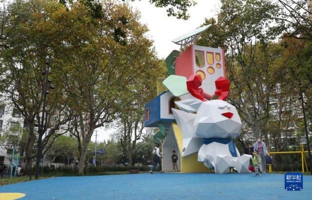 11月18日,孩子们在上海市虹口区和平公园内的儿童游乐区玩耍。
