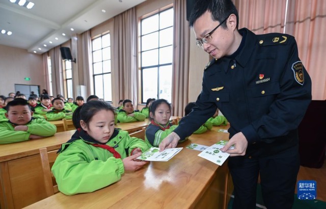 2月7日,杭州市生态环境局临安分局的党员志愿者在潜川小学向学生发放无废校园宣传单并讲解。当日,杭州...