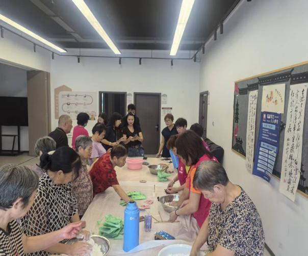 志愿者来到浦乐居家养老服务中心,与中心老人共同制作冰皮月饼活动,享受节日与手工乐趣。