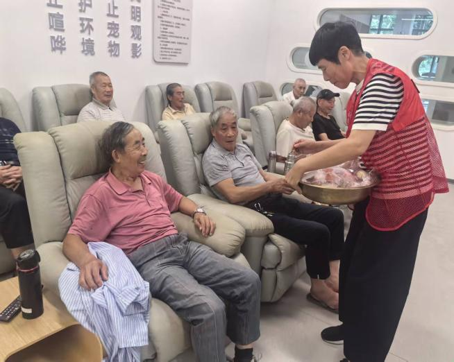 在浦沿街道钱塘居家养老服务中心,志愿者与长者们除了庆祝双节,还为长者举办生日会,在《歌唱祖国》的歌声中,传递美好祝愿,共筑家国梦。