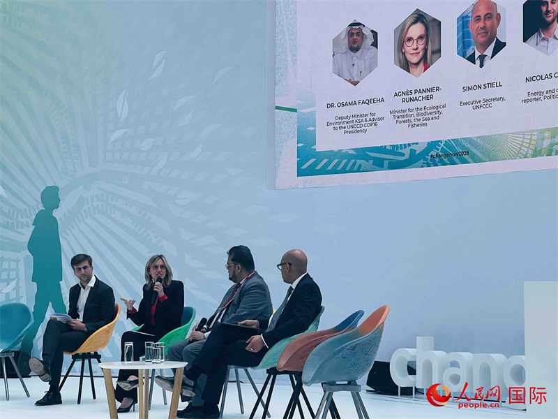 法国能源转型部长、沙特环境副部长在开幕式中致辞。人民网记者 何蒨摄