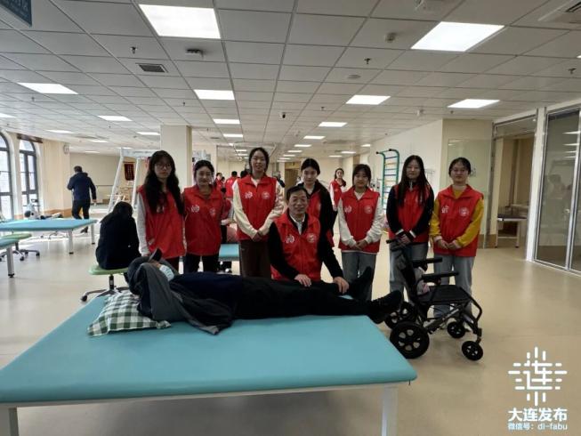 在周末和节假日,刘为国定期带领团队走进社区和养老院服务群众;在大连马拉松等重要活动的现场,他也会带领学生组成志愿者服务队,在赛事保障点为参赛者提供康复服务。