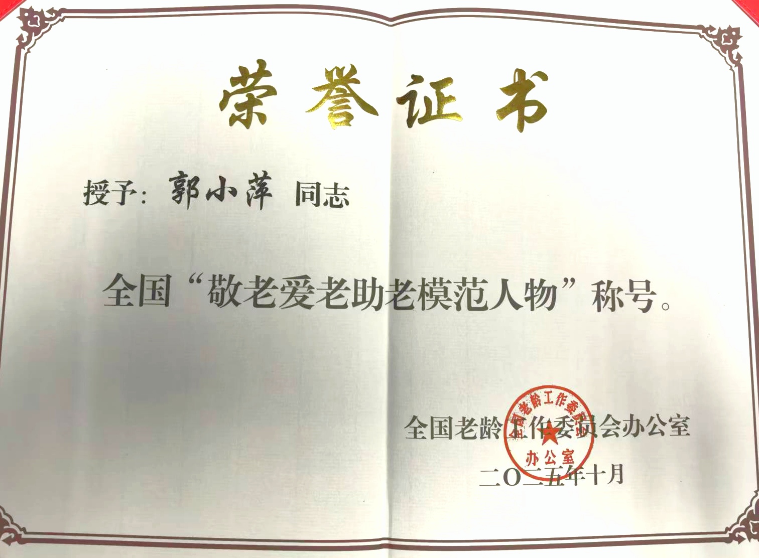 近日,民政部全国老龄工作委员会办公室表彰全国“敬老爱老助老模范人物”,上饶市交警支队退休干部郭小萍喜获殊荣,红彤彤的证书印证了她这位64岁的老党员,在公益路上的执着前行。