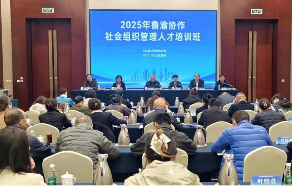 10月22日,2025年鲁渝协作社会组织管理人才培训班在山东淄博开班。重庆市民政局二级巡视员周利民作开班动员讲话,山东省民政厅二级巡视员葛树芝、淄博市民政局党组书记邢化良出席培训班并致辞。山东省社会组织总会党委副书记夏宗长主持开班仪式。