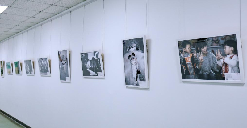 图为“天使的微笑”儿童公益摄影展展出的舞蹈艺术疗愈课程与三组家庭的影像。(主办方供图)