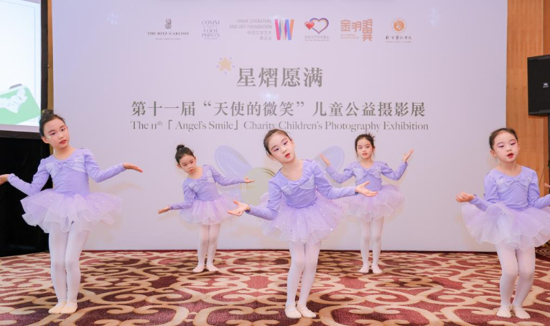 图为孩子们在“天使的微笑”儿童公益摄影展开幕式上表演舞蹈。(主办方供图)