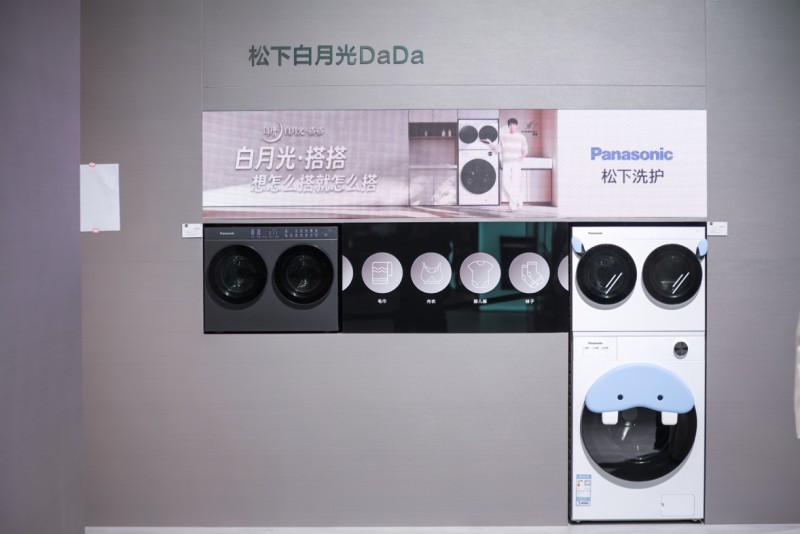 洗衣机展区展出的明星产品——松下全球首创四筒全热泵洗烘护一体机ALPHA G5“大四洗”,凭借创新性的“四筒一体,8in1”设计,实现“一台洗衣机就是一间洗衣房”,打造一站式整体洗护解决方案。松下自由组合白月光搭搭三筒洗衣机,实现三筒独立投放,精准配给;多元去渍程序与娇奢面料专属洗烘,从容应对全场景洗护需求;百搭设计适配各类家居风格;更有多重除菌保障,为贴身衣物带来安心洁净体验。